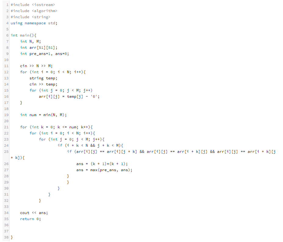 2. N,M 둘 중 작은 값 = 정사각형 길이의 최댓값 -> int num = min(N,M);